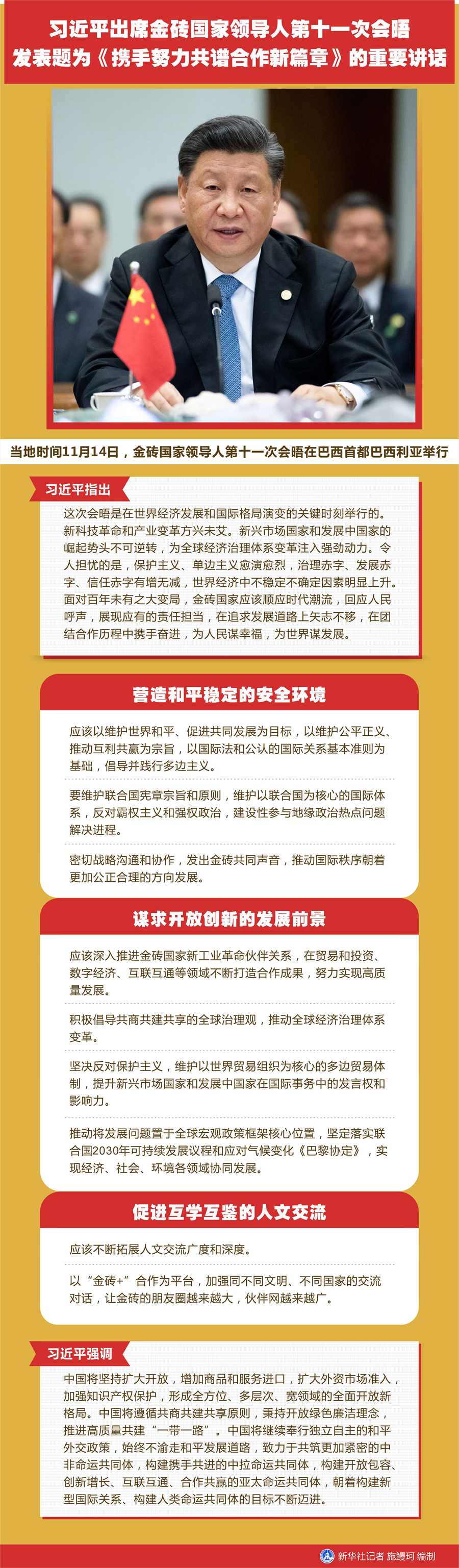 圖表:習(xí)近平出席金磚國(guó)家領(lǐng)導(dǎo)人第十一次會(huì)晤 發(fā)表題為《攜手努力共譜合作新篇章》的重要講話 新華社記者 施鰻珂 編制