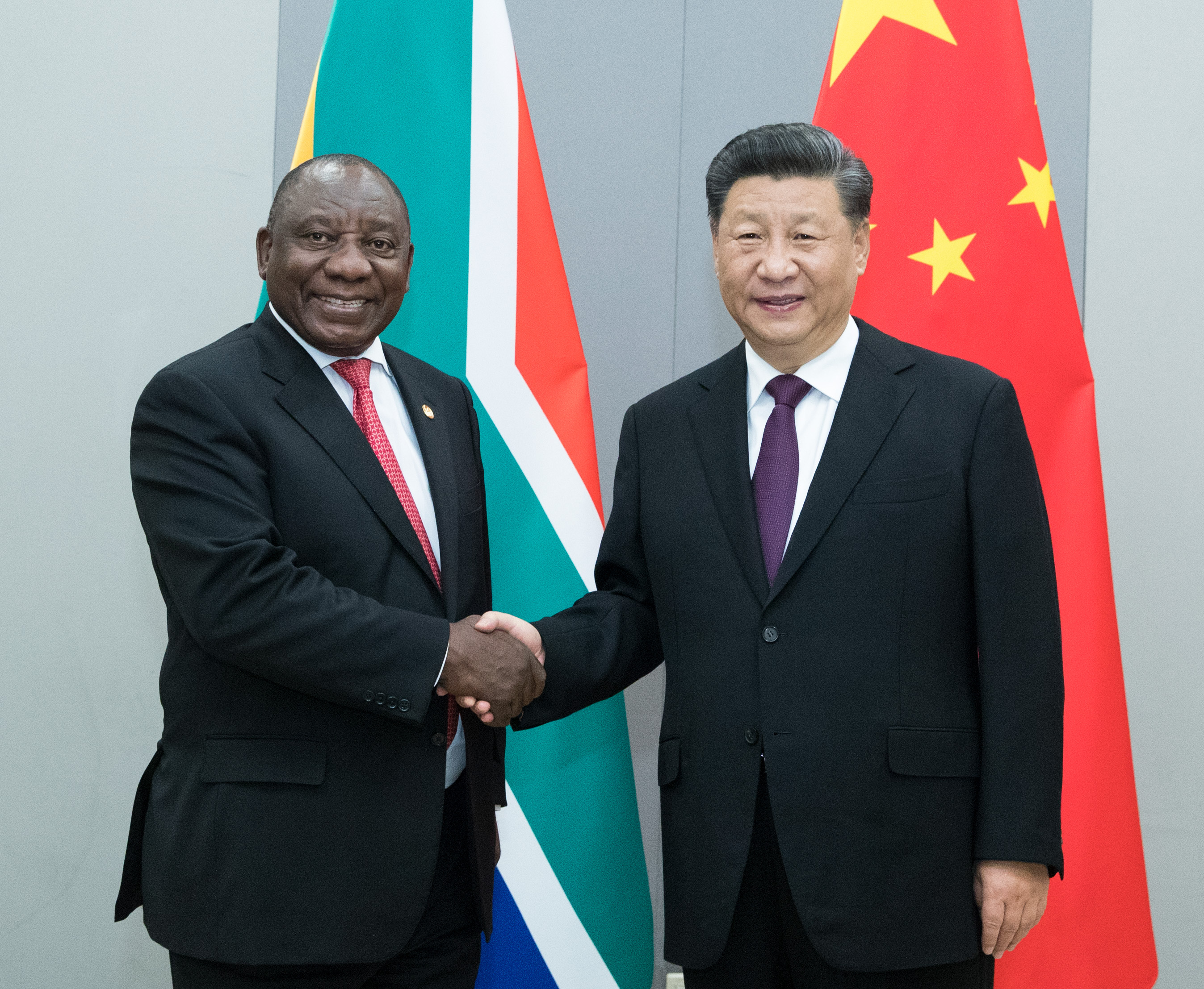▲當(dāng)?shù)貢r間11月14日,國家主席習(xí)近平在巴西利亞會見南非總統(tǒng)拉馬福薩。新華社記者王曄攝