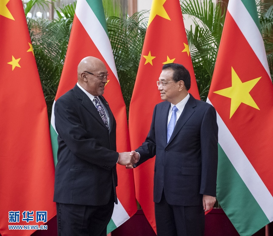 李克強(qiáng)表示,中國(guó)和蘇里南雖然相隔萬(wàn)里,但兩國(guó)人民之間友好情誼深厚。建交40多年來(lái),雙邊關(guān)系始終健康穩(wěn)定發(fā)展。習(xí)近平主席將同總統(tǒng)先生舉行會(huì)談,推動(dòng)中蘇關(guān)系邁上新臺(tái)階。我們?cè)咐^續(xù)在相互尊重、平等相待的基礎(chǔ)上,同蘇方增進(jìn)政治互信,對(duì)接發(fā)展戰(zhàn)略,促進(jìn)務(wù)實(shí)合作,擴(kuò)大人文交流,更好實(shí)現(xiàn)互利共贏。