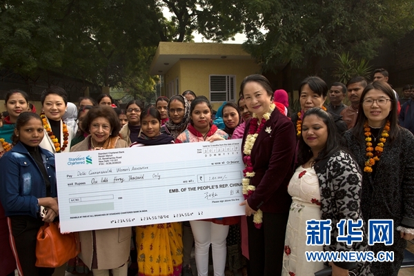 中國駐印度大使館婦女小組向德里英聯(lián)邦婦女協(xié)會(huì)捐贈(zèng)善款現(xiàn)場。賈維德·達(dá)爾 攝