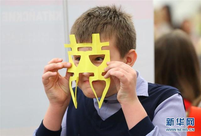 1月16日,在白俄羅斯首都明斯克,一名學(xué)生展示自己的剪紙作品。當(dāng)日,為期四天的“歡樂春節(jié)”演出活動(dòng)在白俄羅斯拉開帷幕。來自中國(guó)江西省歌舞劇院的演員們將帶來四場(chǎng)演出,展現(xiàn)中國(guó)春節(jié)文化,與當(dāng)?shù)厝嗣窆蚕砜鞓?。新華社發(fā)(任科夫攝)