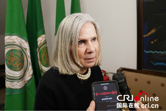 阿盟社會(huì)事務(wù)助理秘書長(zhǎng)海法·阿卜·加扎拉接受記者采訪
