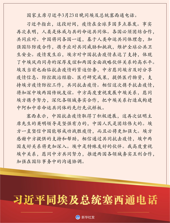 圖表:習(xí)近平同埃及總統(tǒng)塞西通電話 新華社發(fā)
