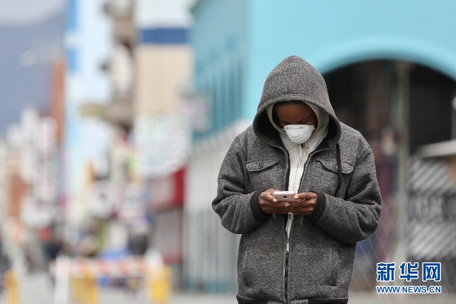 4月10日,一名戴口罩的行人在美國洛杉磯威尼斯海灘看手機。 為減緩新冠病毒的傳播,洛杉磯市長7日下令,民眾在公共營業(yè)場所要戴口罩或用織物遮擋住臉,這一行政令于2020年4月10日生效。 新華社發(fā)