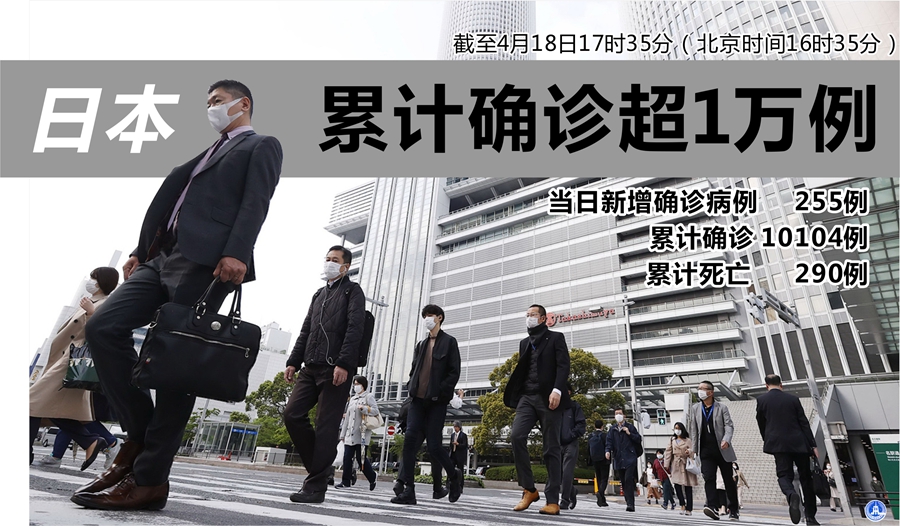 新華社東京4月18日電(記者華義)據(jù)日本廣播協(xié)會(NHK)電視臺的統(tǒng)計,截至18日17時35分(北京時間16時35分),日本當日新增確診病例255例,累計確診10104例;累計死亡290例。
