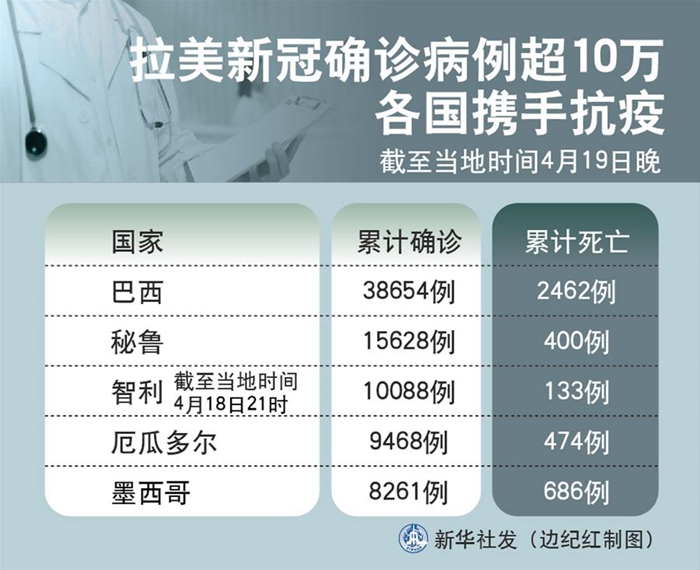 新華社圣保羅4月19日電? 綜述:拉美新冠確診病例超10萬(wàn) 各國(guó)攜手抗疫