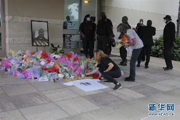 6月9日,在美國得克薩斯州休斯敦,人們在舉行弗洛伊德葬禮的教堂外獻花。因警察暴力執(zhí)法而死亡的非裔美國人弗洛伊德的葬禮9日在其“家鄉(xiāng)”——休斯敦市的一座教堂舉行。葬禮結束后,弗洛伊德的遺體被運往休斯敦一處墓地安葬。新華社發(fā)(勞承躍攝)