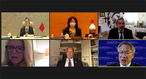 這次視頻對話由中國人民外交學(xué)會和美國美亞學(xué)會合作舉辦。上述兩機構(gòu)負責人等出席了對話。
