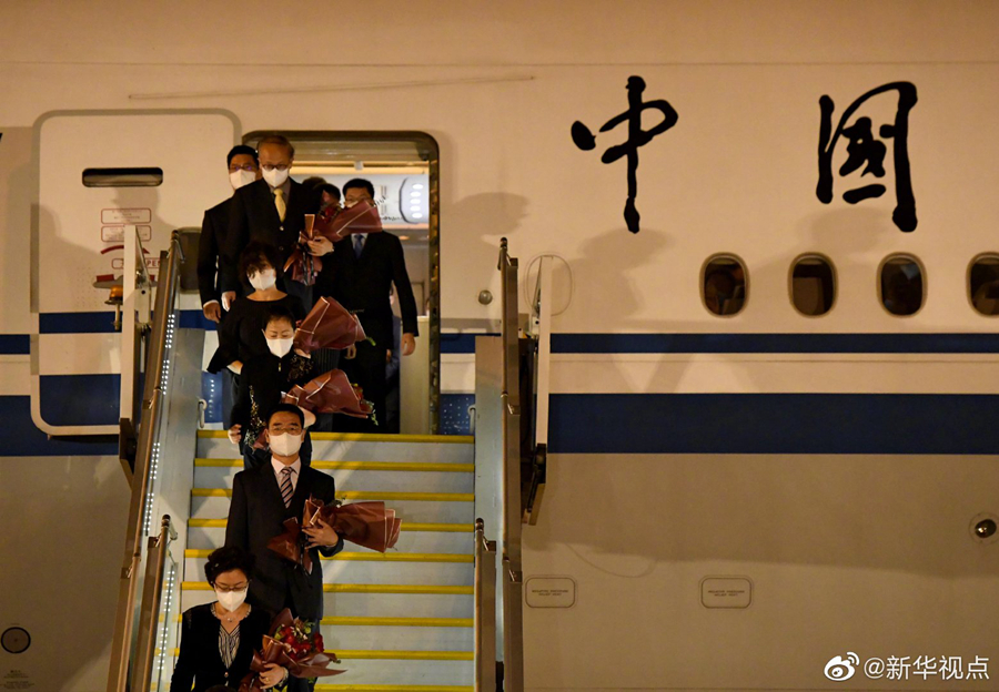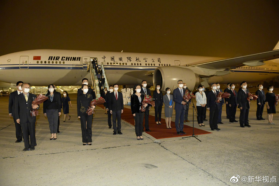 8月17日晚,中國駐休斯敦總領(lǐng)事館全體館員乘包機(jī)抵達(dá)北京,外交部在首都機(jī)場(chǎng)舉行簡(jiǎn)短莊重迎接儀式。(記者成欣、岳月偉) ????