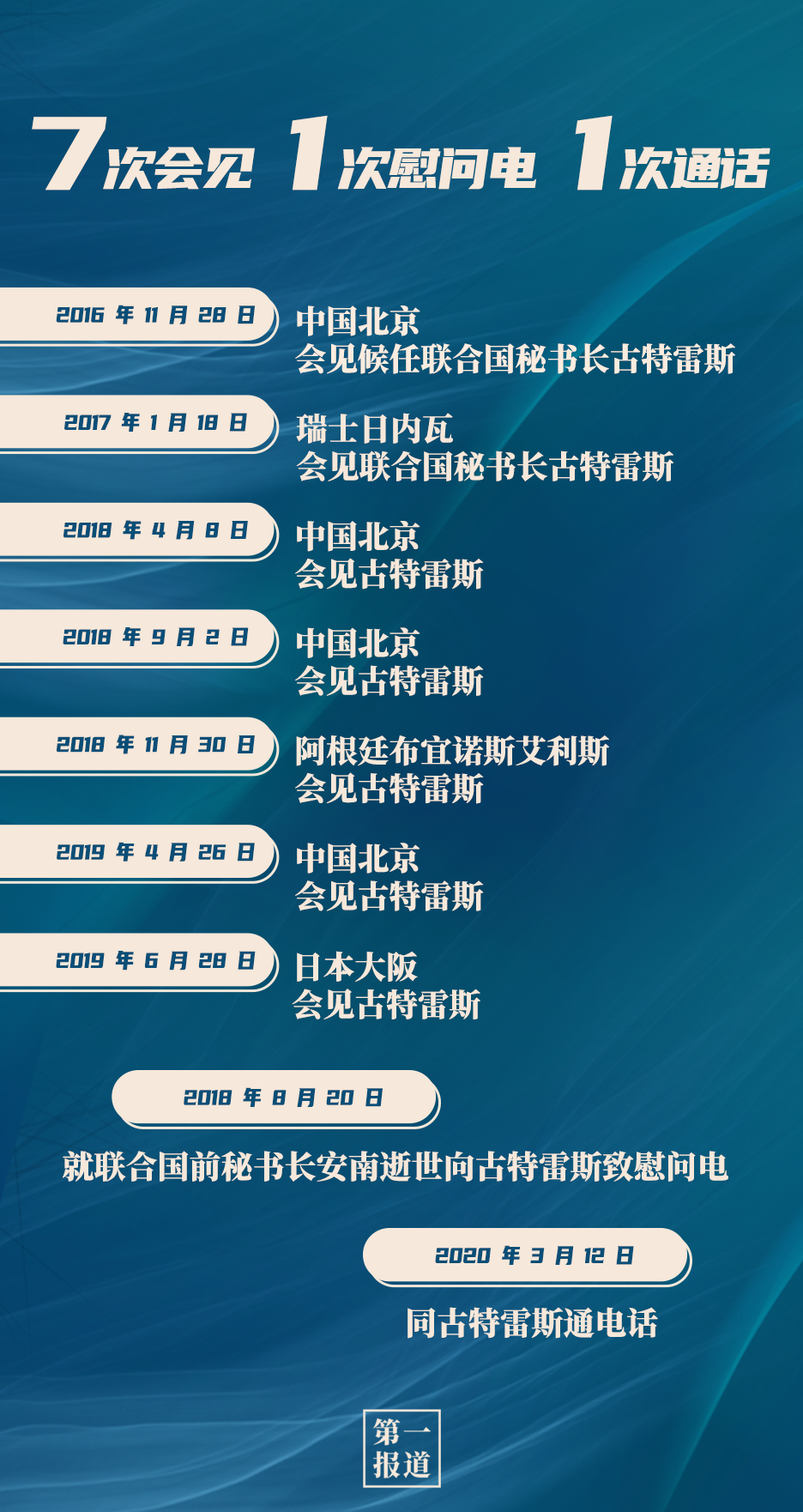 其中,習(xí)主席同聯(lián)合國(guó)“掌門人”的交往互動(dòng)最為頻繁,截至目前,習(xí)主席已7次會(huì)見(jiàn)聯(lián)合國(guó)秘書長(zhǎng)古特雷斯。今年,在全球暴發(fā)新冠疫情的特殊情況下,習(xí)主席還通過(guò)“電話外交”同古特雷斯保持溝通交流: