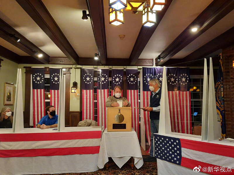 美國東部時(shí)間3日凌晨,美國東北部新罕布什爾州部分選民率先赴投票站投票,2020年美國大選選舉日投票正式開始。