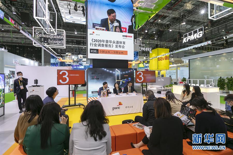 11月5日,普華永道在第三屆進博會服務(wù)貿(mào)易展區(qū)現(xiàn)場直播《2020年普華永道體育行業(yè)調(diào)查報告》發(fā)布會。新華社記者 王翔 攝
