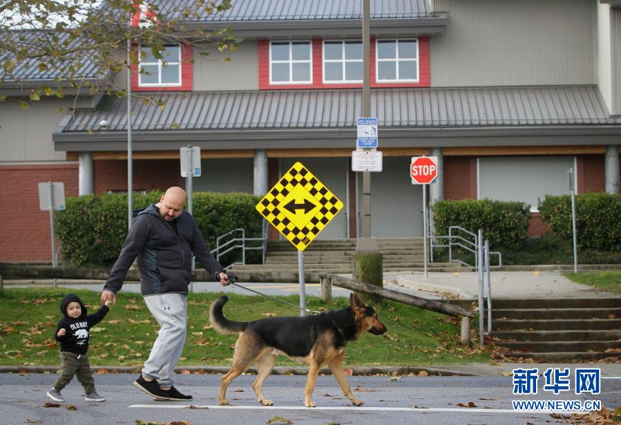 11月15日,在加拿大不列顛哥倫比亞省薩里,居民從一所因出現(xiàn)新冠疫情關(guān)閉的學(xué)校前走過(guò)。新華社發(fā)(梁森攝)