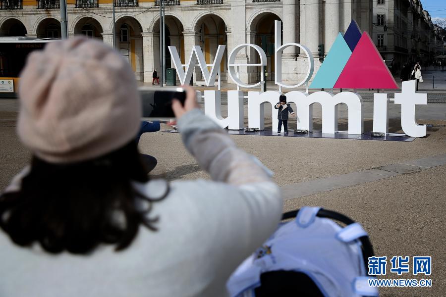 11月30日,在葡萄牙里斯本,一名兒童在2020年網(wǎng)絡(luò)峰會的立體標識前留影。