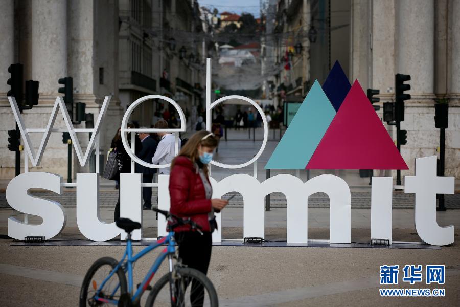 11月30日,在葡萄牙里斯本,戴口罩的行人走過2020年網(wǎng)絡(luò)峰會的立體標(biāo)識。