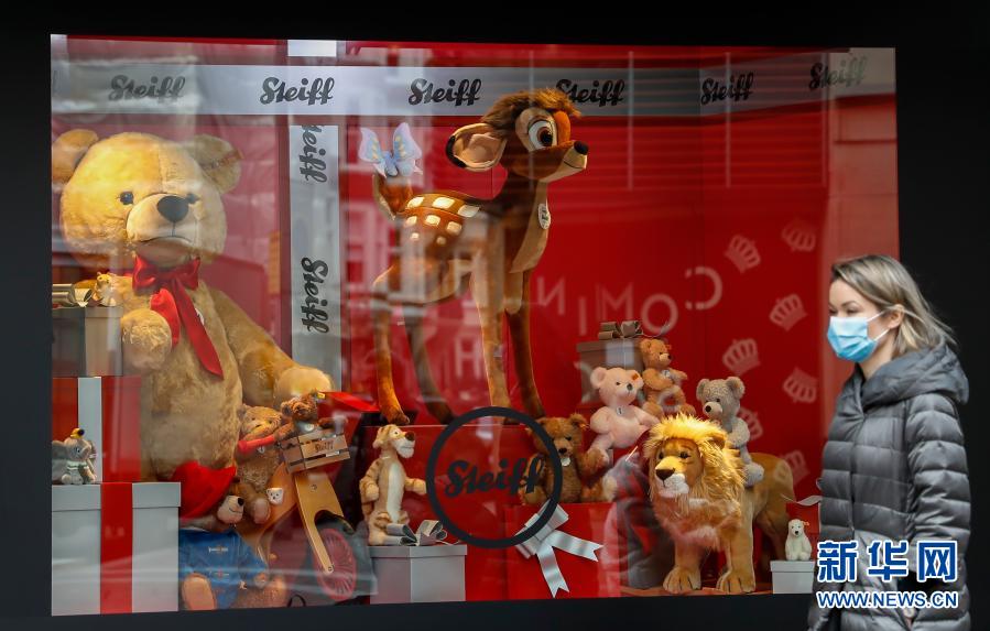 12月2日,一名戴口罩的女子從英國(guó)倫敦一家重新開(kāi)門(mén)迎客的商店櫥窗前走過(guò)。
