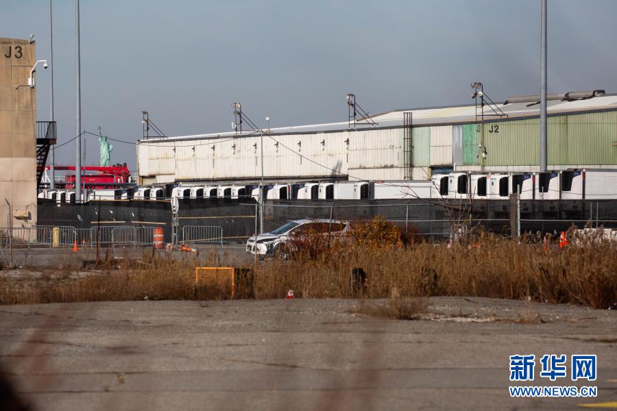 12月3日,在美國紐約,存放新冠病亡者尸體的冷藏車停放在一處臨時停尸場內。新華社發(fā)(郭克 攝)