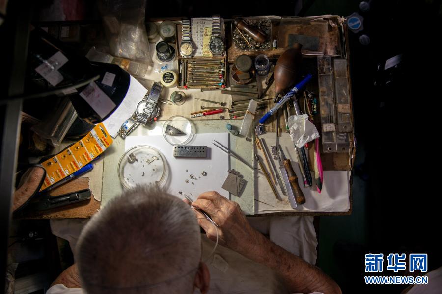 12月5日,在馬來(lái)西亞雪蘭莪州巴生的郁昌表行,韋華在維修手表。新華社發(fā)(張紋綜攝)