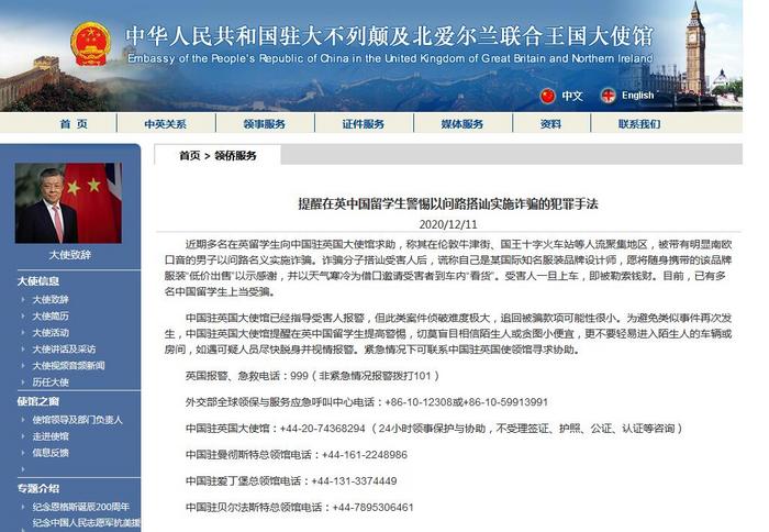 中國駐英國大使館已經(jīng)指導受害人報警,但此類案件偵破難度極大,追回被騙款項可能性很小。為避免類似事件再次發(fā)生,中國駐英國大使館提醒在英中國留學生提高警惕,切莫盲目相信陌生人或貪圖小便宜,更不要輕易進入陌生人的車輛或房間,如遇可疑人員盡快脫身并視情報警。緊急情況下可聯(lián)系中國駐英國使領(lǐng)館尋求協(xié)助。