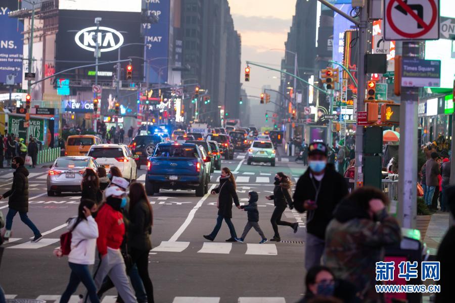 12月12日,行人走在美國紐約時報廣場上。新華社發(fā) (郭克攝)