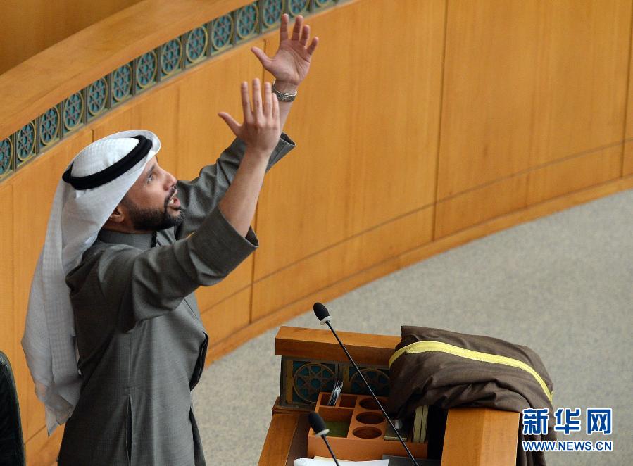 12月15日,在科威特首都科威特城的國民議會大廈,馬爾祖克·加尼姆在當(dāng)選為新議長后歡呼。新華社發(fā)(阿薩德攝)