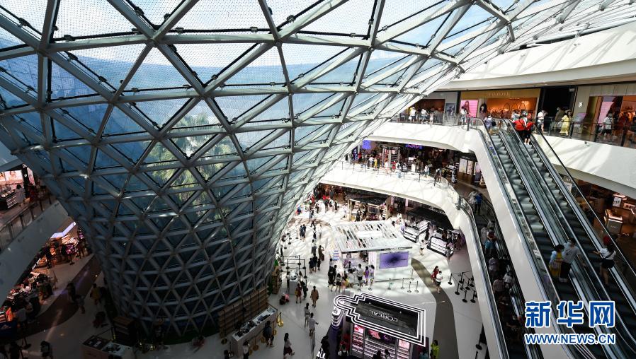8月6日,游客在海南三亞國際免稅城購物。新華社記者 楊冠宇 攝