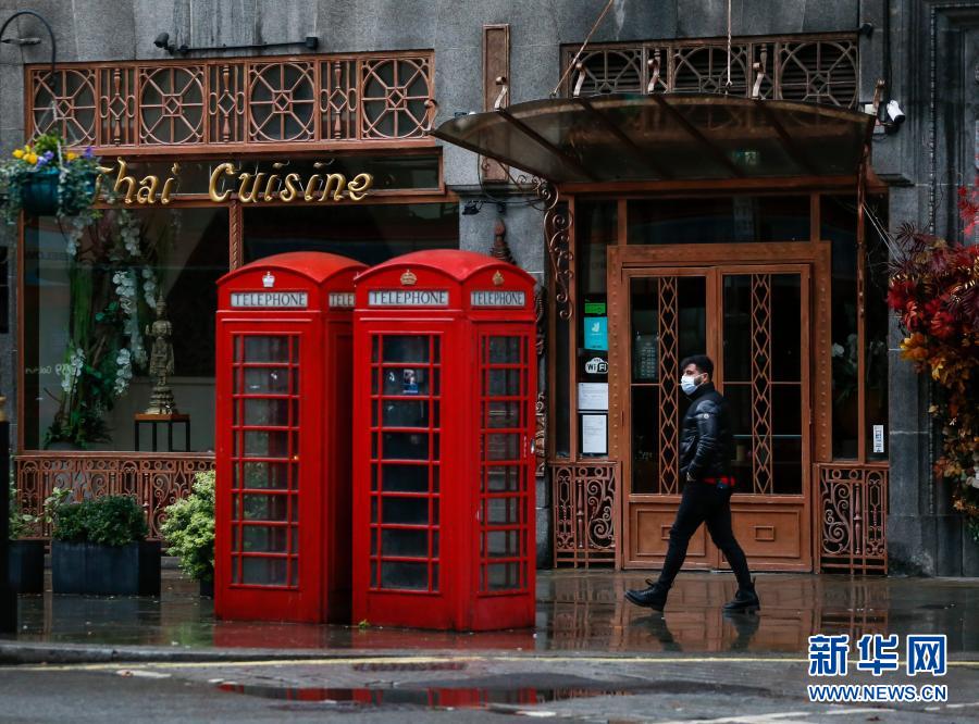12月21日,一名戴口罩的男子經(jīng)過英國倫敦特拉法加廣場旁一家關(guān)閉的餐廳。新華社記者 韓巖 攝