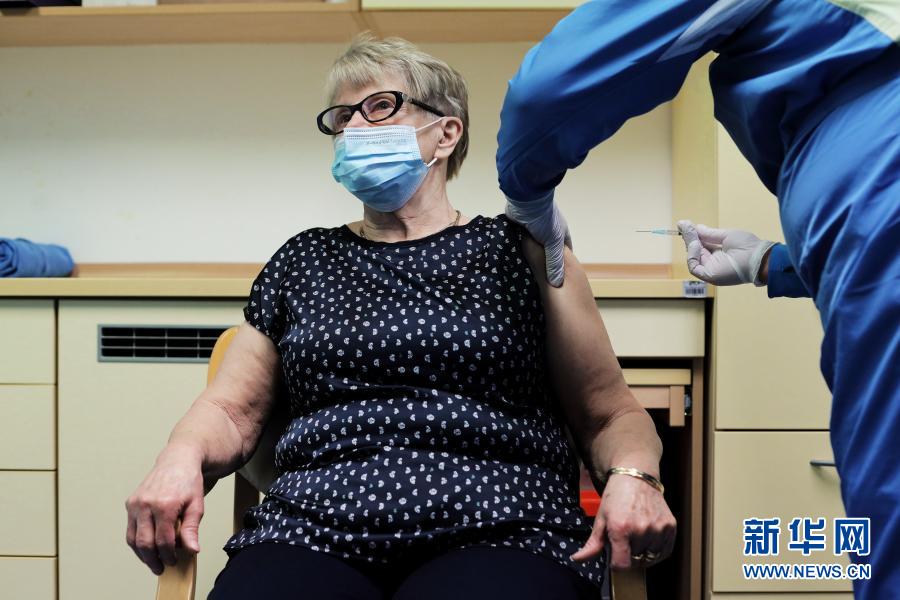 12月27日,在斯洛文尼亞首都盧布爾雅那一家養(yǎng)老院,醫(yī)務人員為一名志愿者老人注射新冠疫苗。