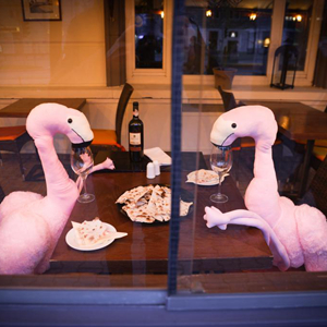 4月13日,波蘭首都華沙一家餐館將動(dòng)物玩偶擺放在靠窗座位上吸引顧客。