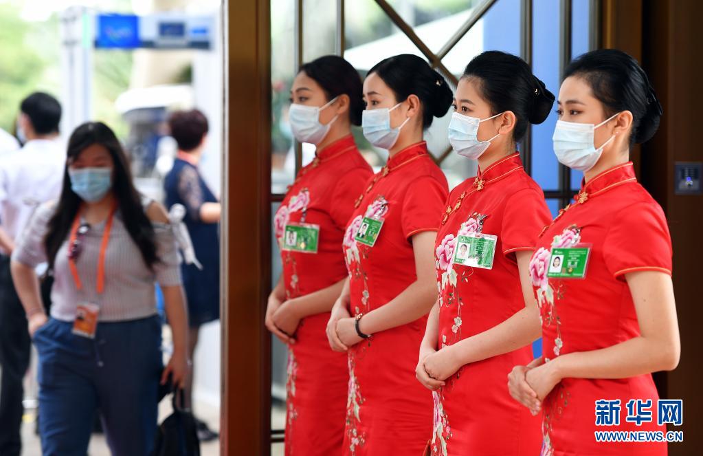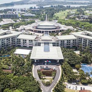 4月18日,志愿者在博鰲亞洲論壇大酒店門前迎接參會(huì)人員。