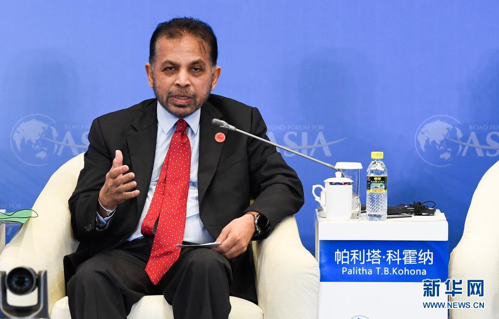 4月19日,斯里蘭卡駐華大使帕利塔·科霍納在“21世紀(jì)海上絲綢之路島嶼經(jīng)濟”分論壇上發(fā)言。新華社記者 楊冠宇 攝
