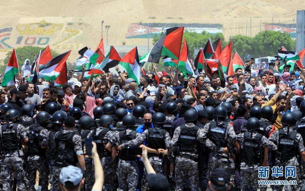 5月14日,人們?cè)诩s旦凱拉邁附近舉行抗議示威活動(dòng),聲援巴勒斯坦民眾。