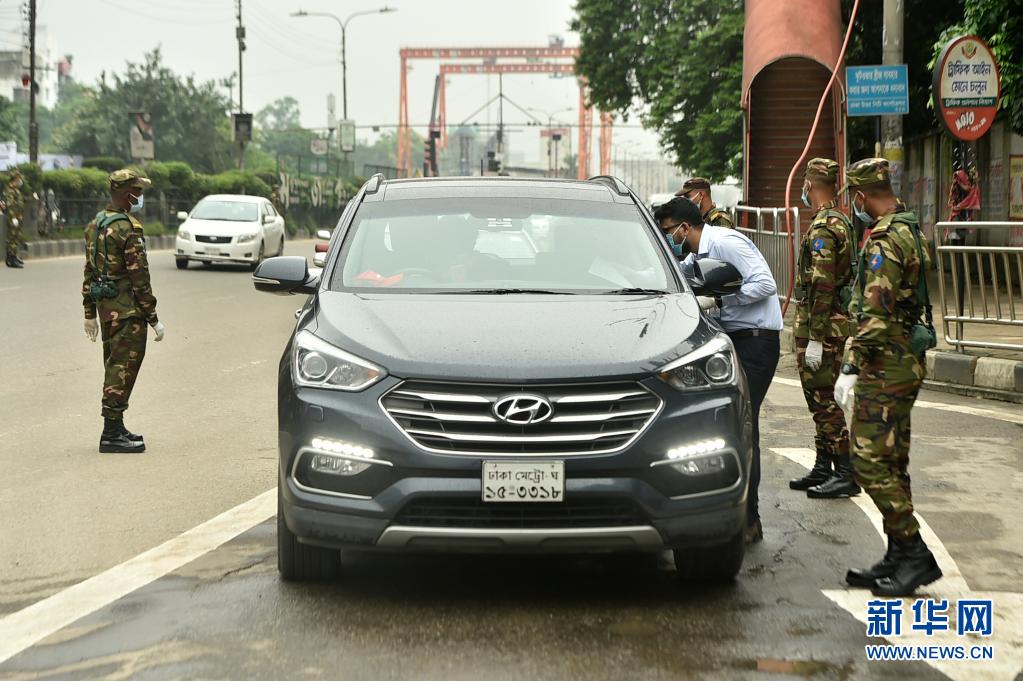 7月1日,軍人在孟加拉國達(dá)卡的街道上檢查過往車輛。