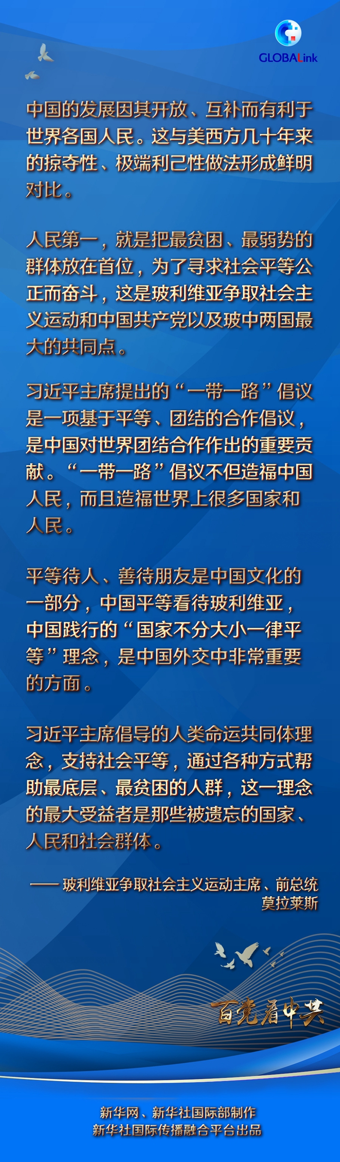 莫拉萊斯指出,習(xí)近平主席倡導(dǎo)的人類命運(yùn)共同體理念,支持社會(huì)平等,通過(guò)各種方式幫助最底層、最貧困的人群,這一理念的最大受益者是那些被遺忘的國(guó)家、人民和社會(huì)群體。