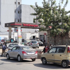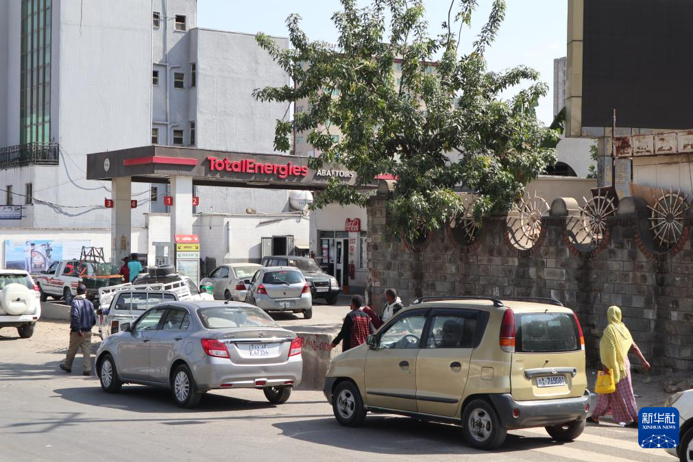 3月17日,在埃塞俄比亚首都亚的斯亚贝巴,车辆在加油站外排队等待加油。新华社记者 刘方强 摄