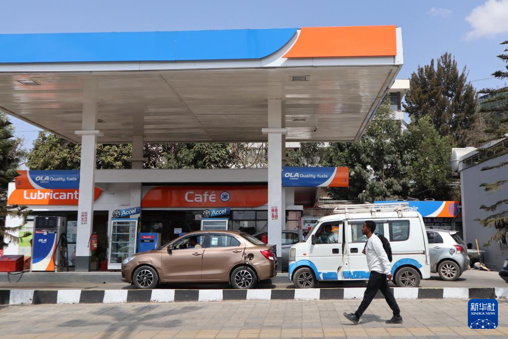 3月17日,在埃塞俄比亚首都亚的斯亚贝巴,行人走过一个加油站。新华社记者 刘方强 摄