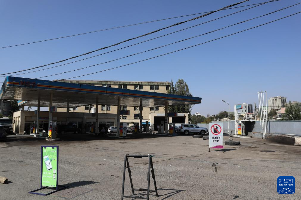 3月17日,在埃塞俄比亚首都亚的斯亚贝巴,由于石油供应紧张,一个加油站暂停营业。新华社记者 刘方强 摄