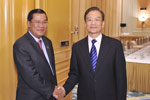 溫家寶會見柬埔寨首相洪森