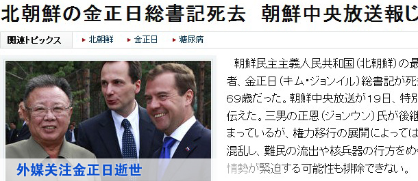 朝中央社有關(guān)金正日去世報(bào)道的全文內(nèi)容