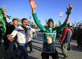 的黎波里民眾游行慶祝卡扎菲之死
