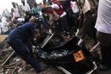 營救人員在墜機(jī)現(xiàn)場抬運(yùn)遇難者遺體