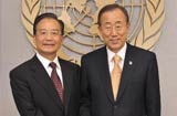 溫家寶會(huì)見聯(lián)合國(guó)秘書長(zhǎng)潘基文