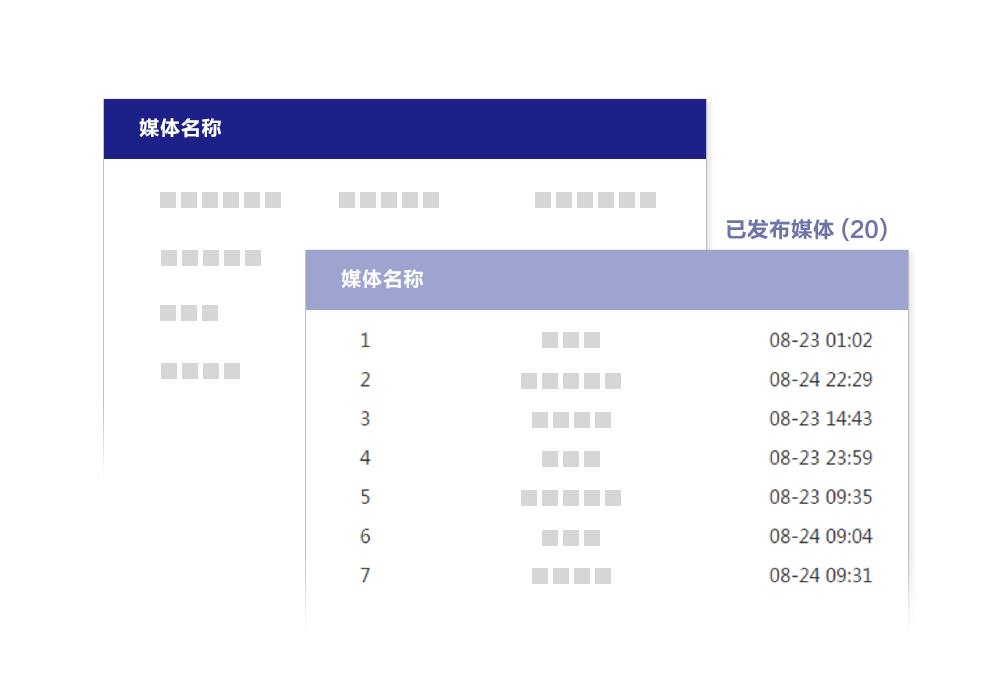 指令下發(fā)稿件實時監(jiān)控展示,左側代表未發(fā)布媒體,右側代表已發(fā)布媒體。監(jiān)測媒體用戶可以主動配置。