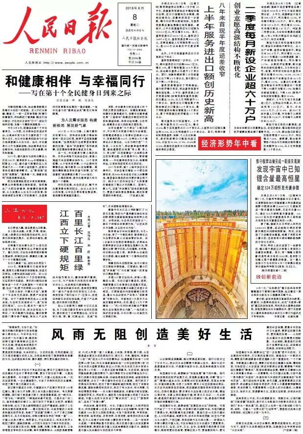 8月8日《人民日?qǐng)?bào)》頭版截圖